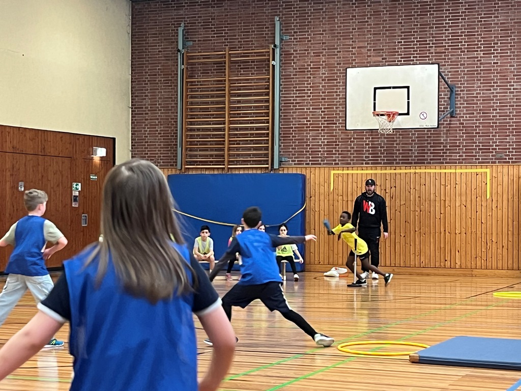 Unter professioneller Anleitung von Coach Peter Beargie von den Bochum Barflies lernten die Kinder erste Techniken sowie Regeln des Baseballs kennen.