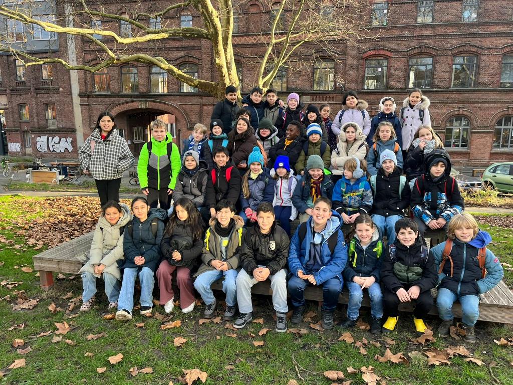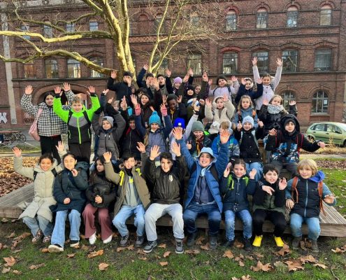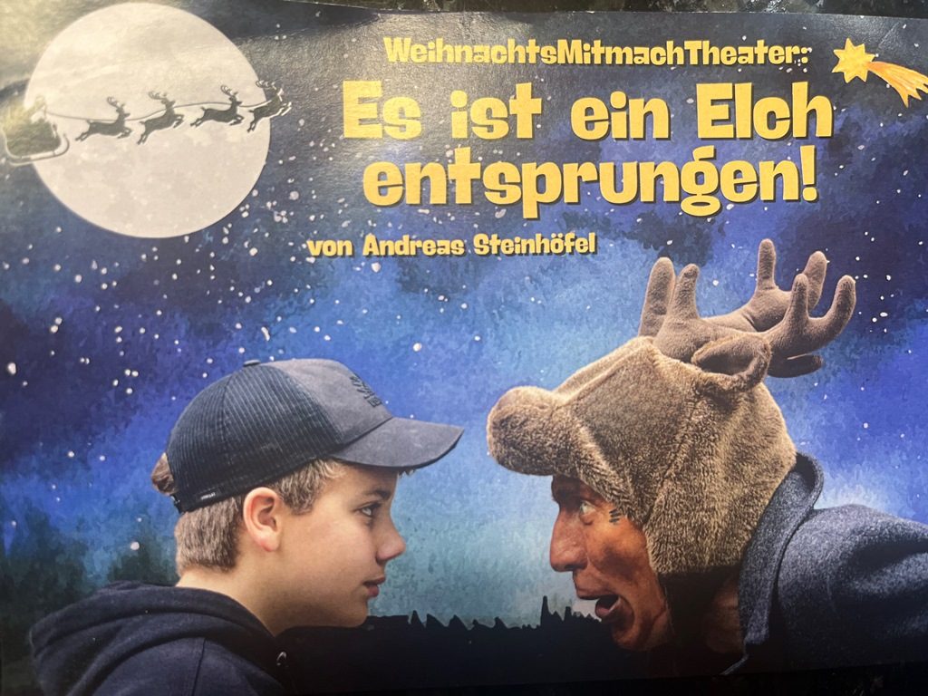 Heute besuchten die Kinder der Fuchs- und Pinguinklasse die Quartiershalle in der KoFabrik, um dort das Weihnachts-Mitmach-Theaterstück „Es ist ein Elch entsprungen“ anzuschauen.