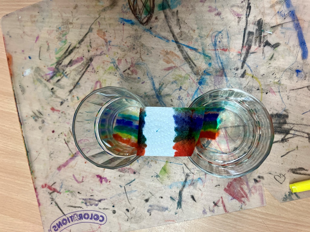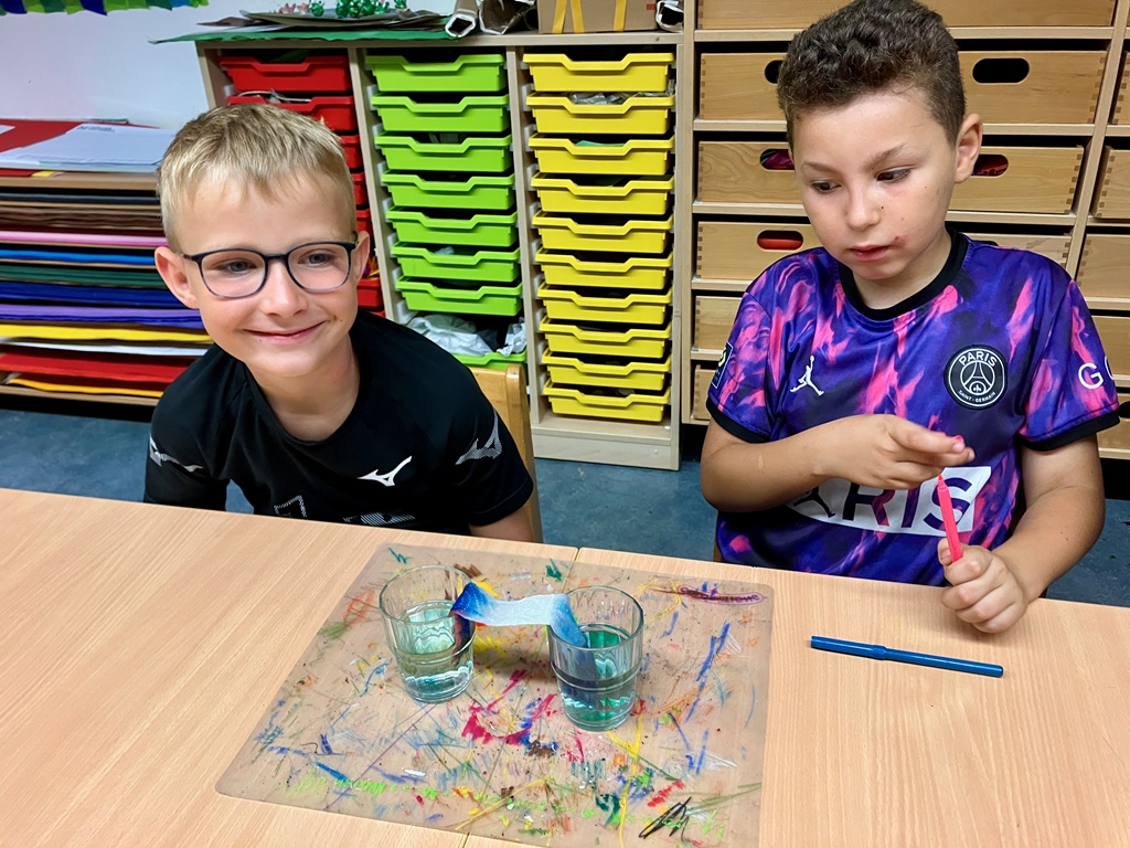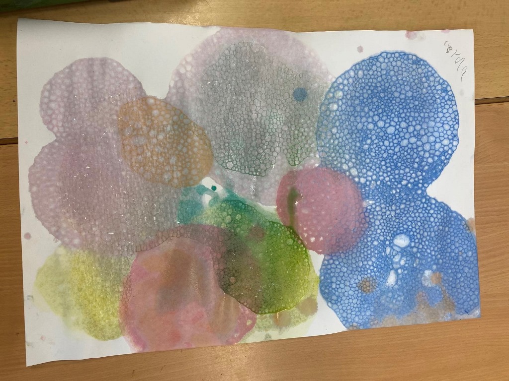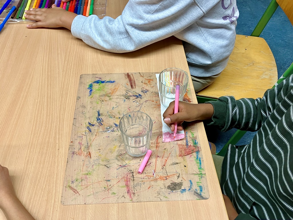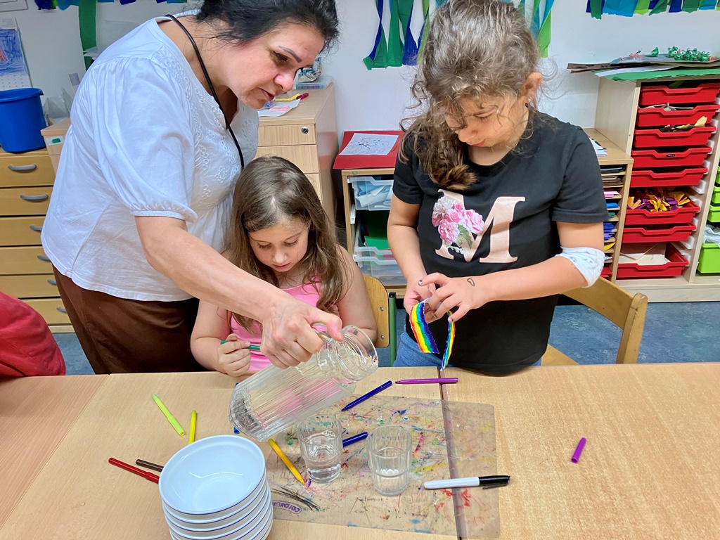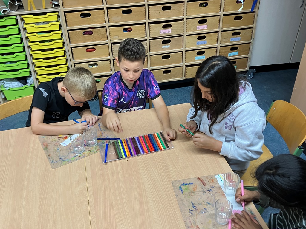 Wasser kann man auch sehr gut kreativ sein: Es entstanden Wasserbilder aus bunten
