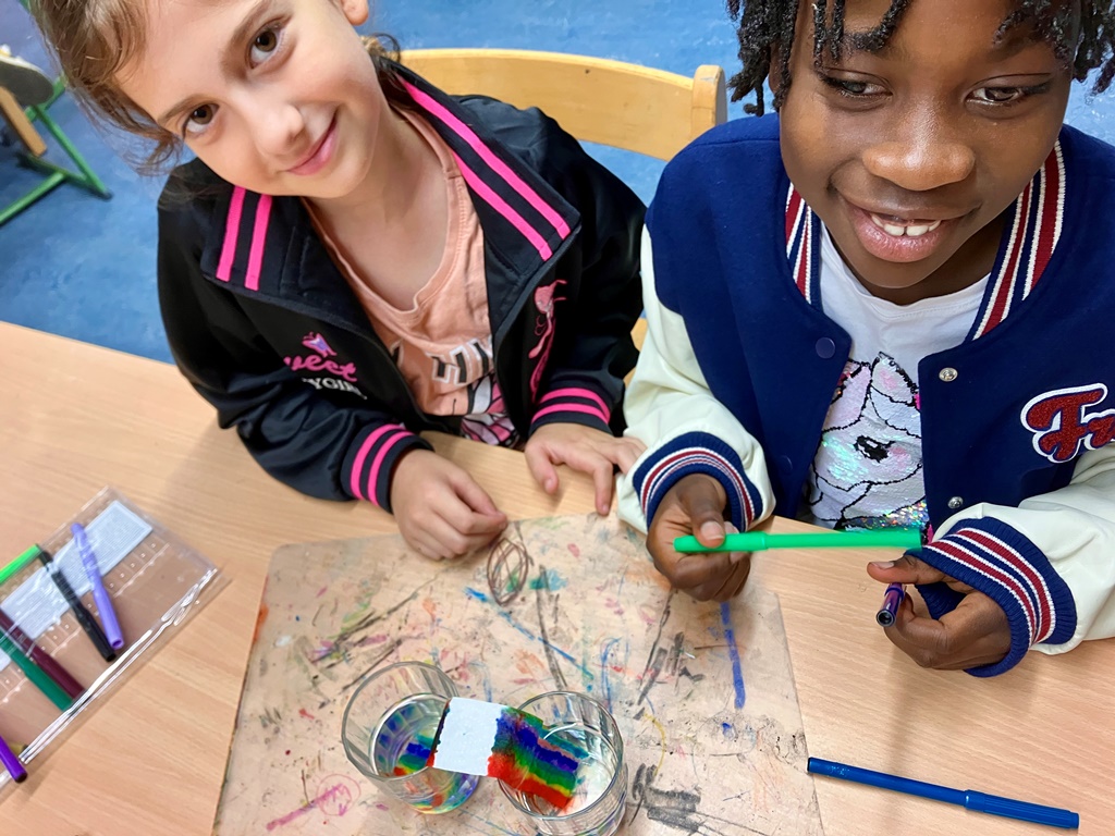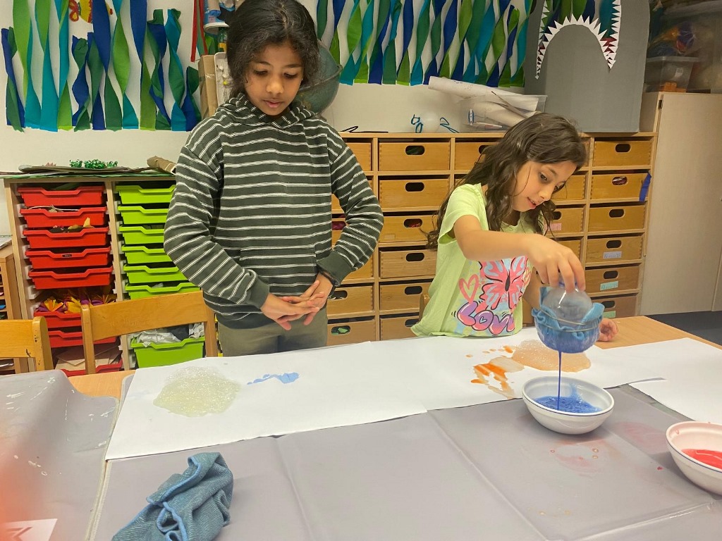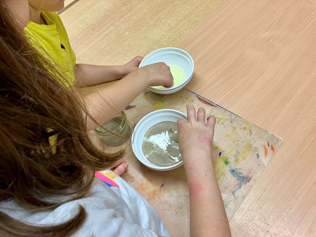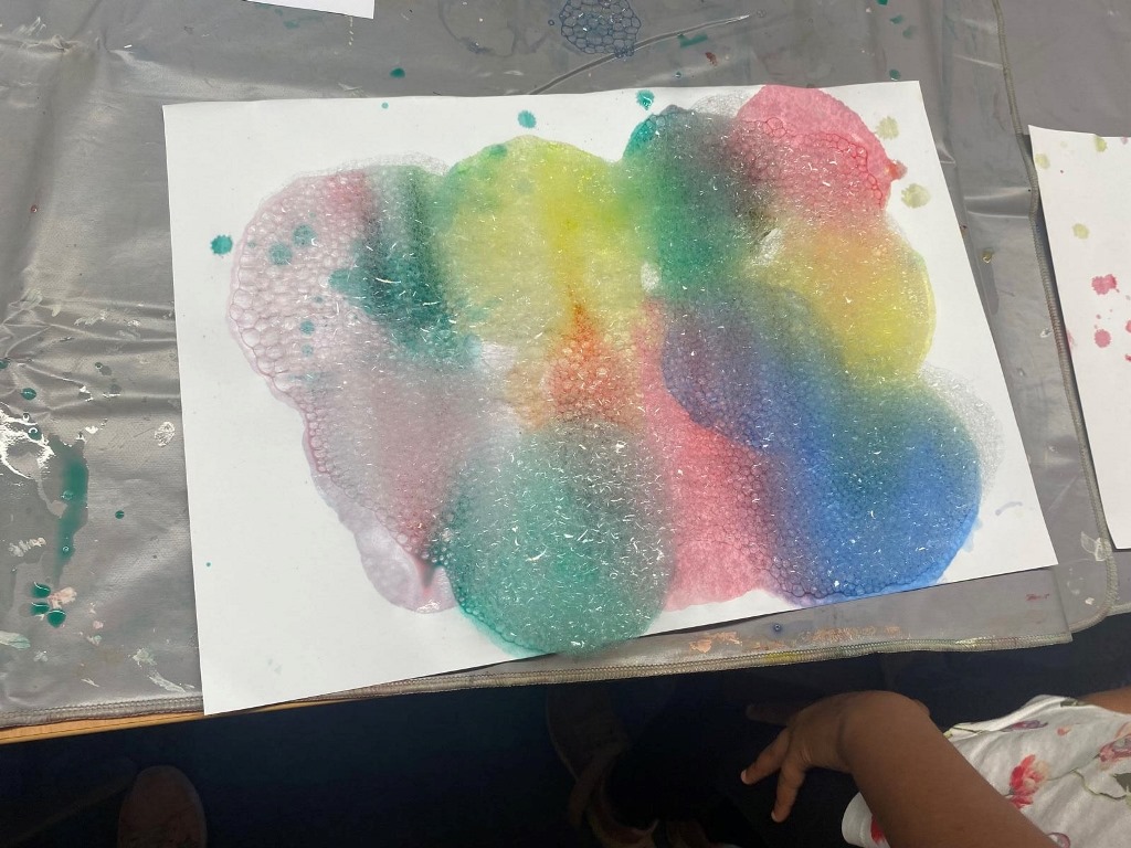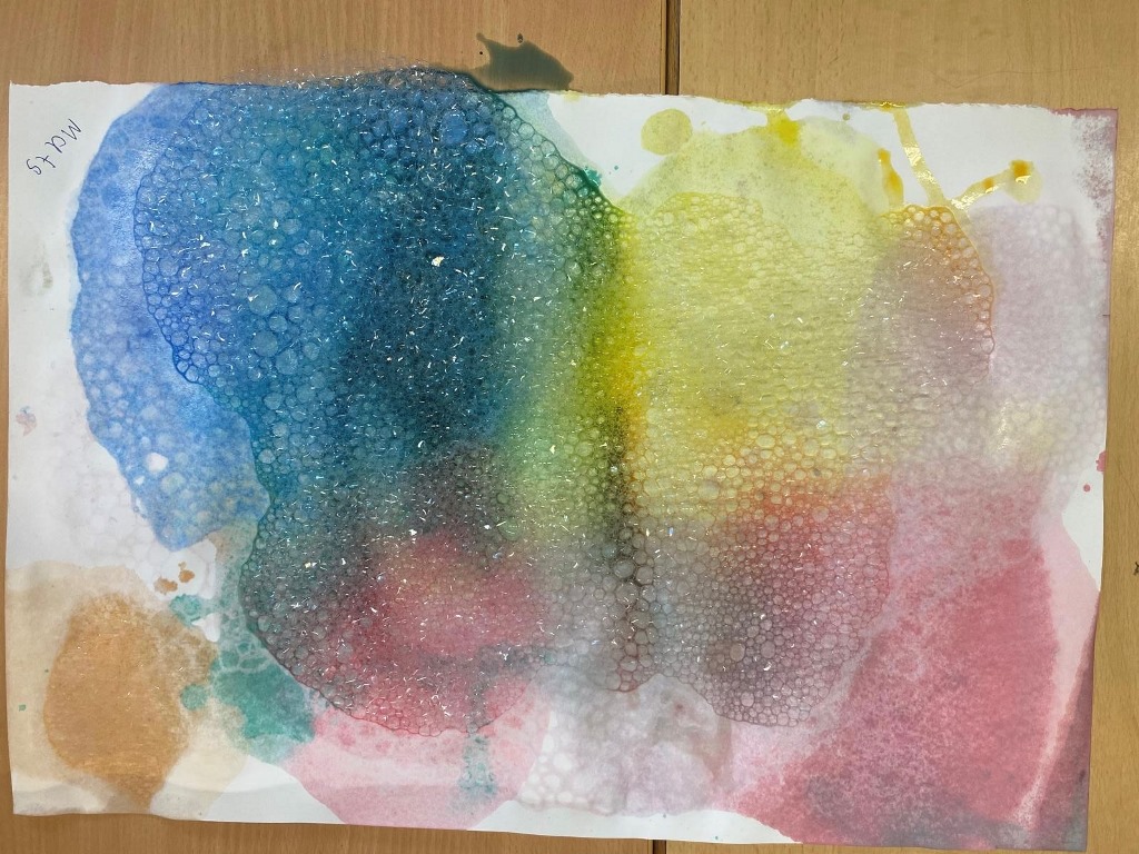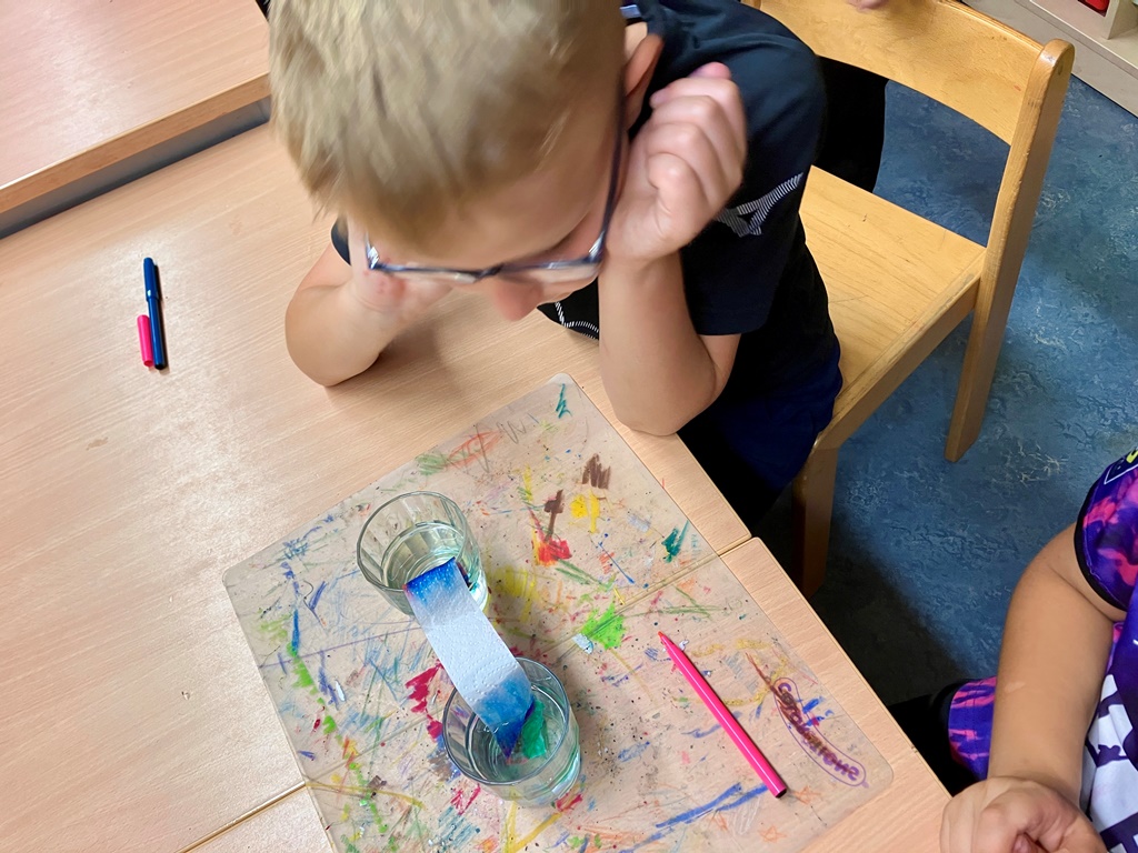 Wasser kann man auch sehr gut kreativ sein: Es entstanden Wasserbilder aus bunten