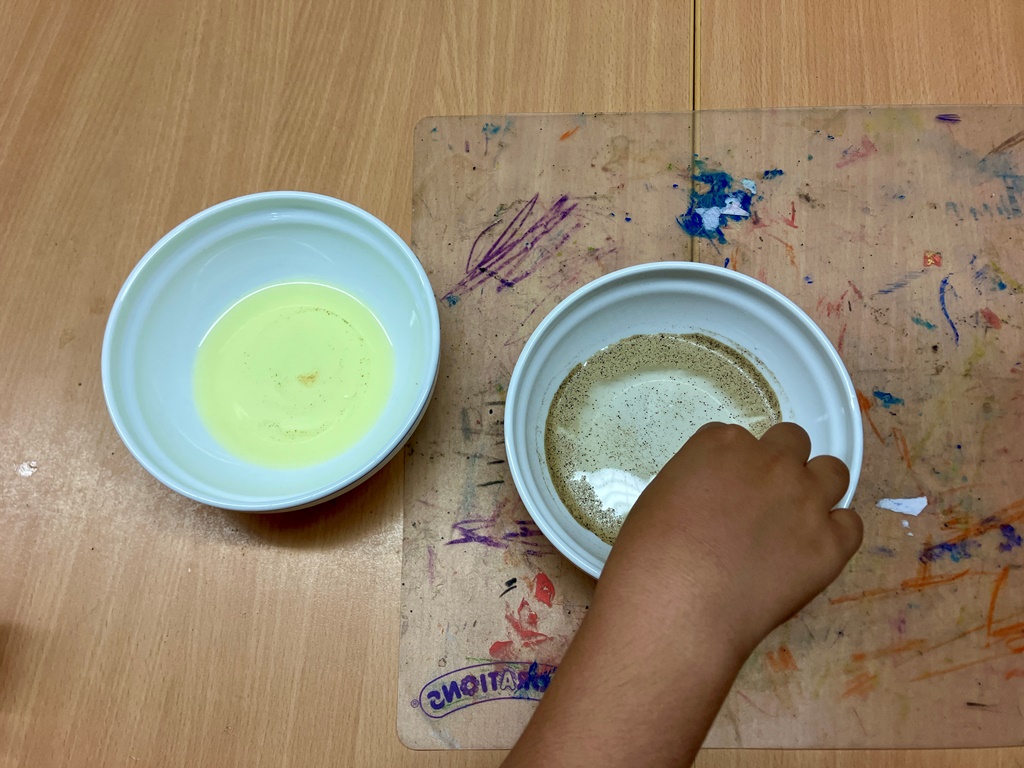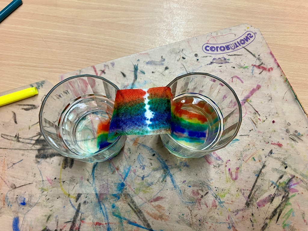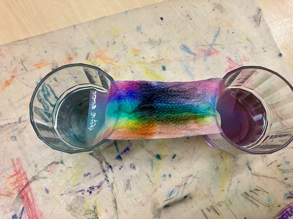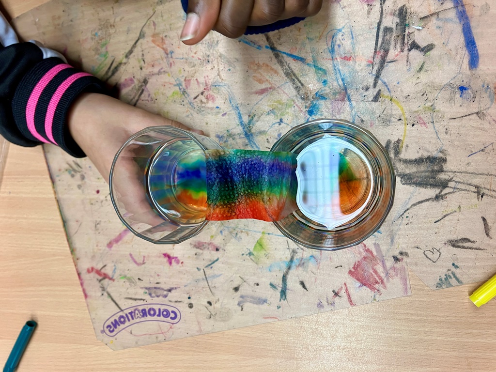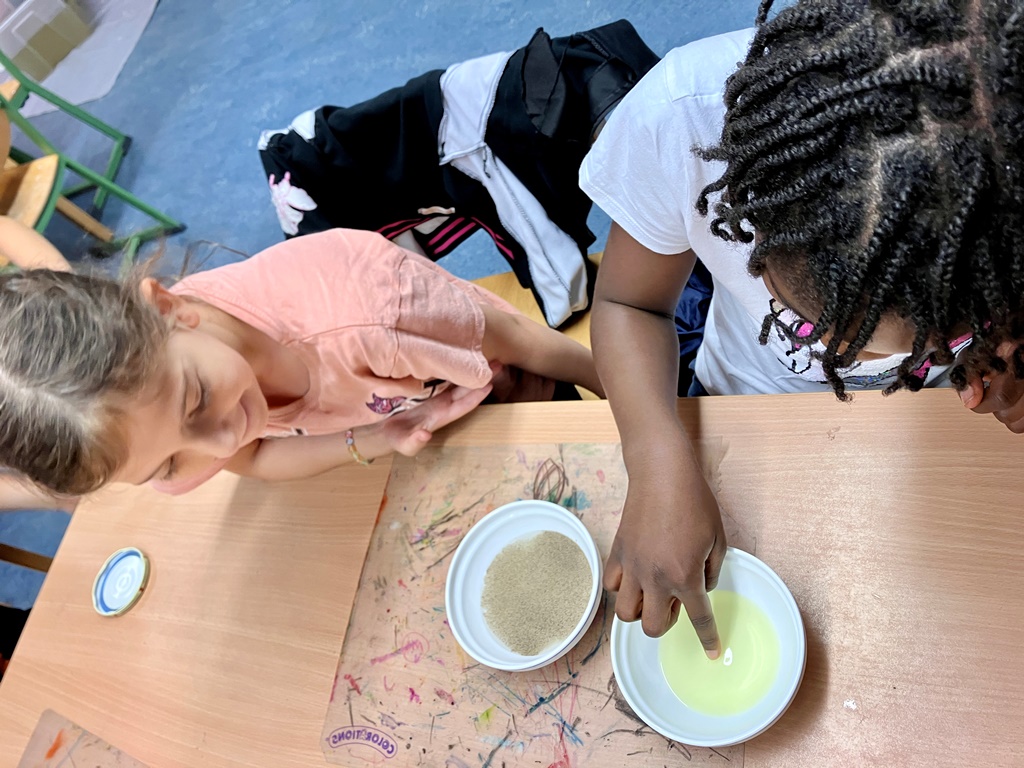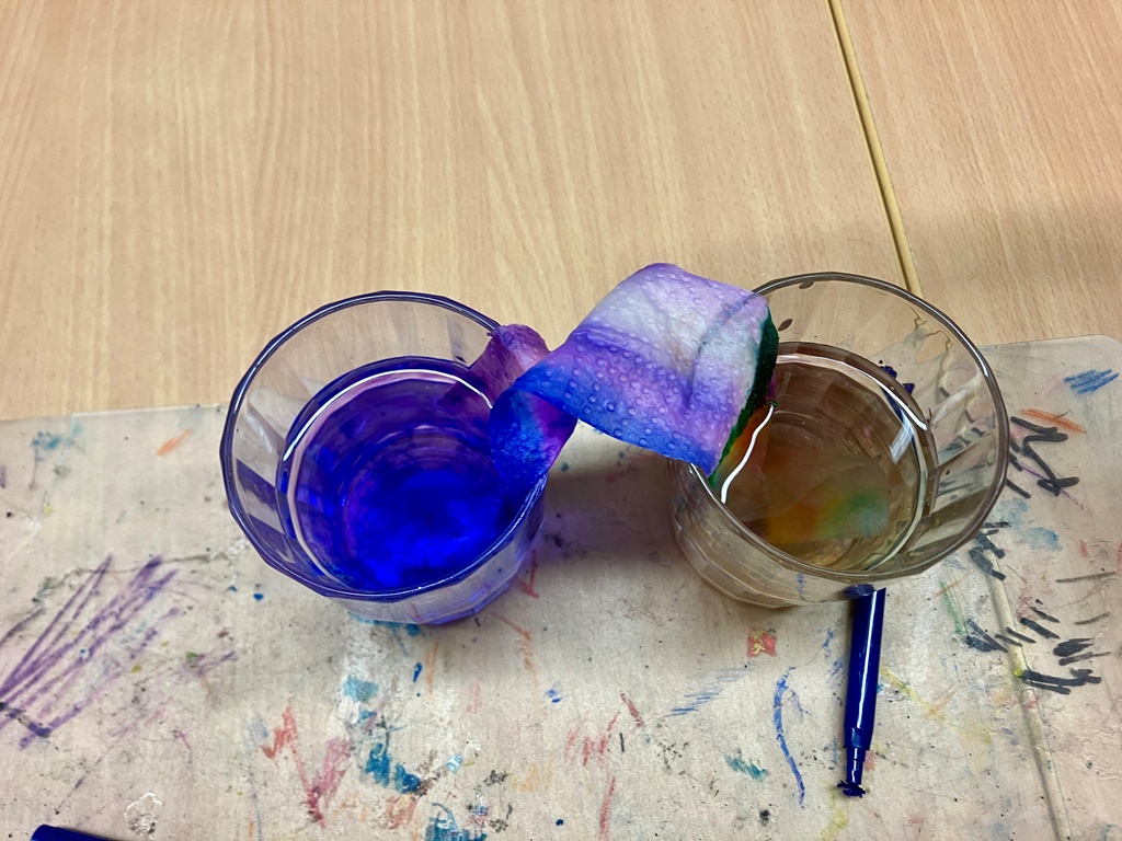 Wasser kann man auch sehr gut kreativ sein: Es entstanden Wasserbilder aus bunten