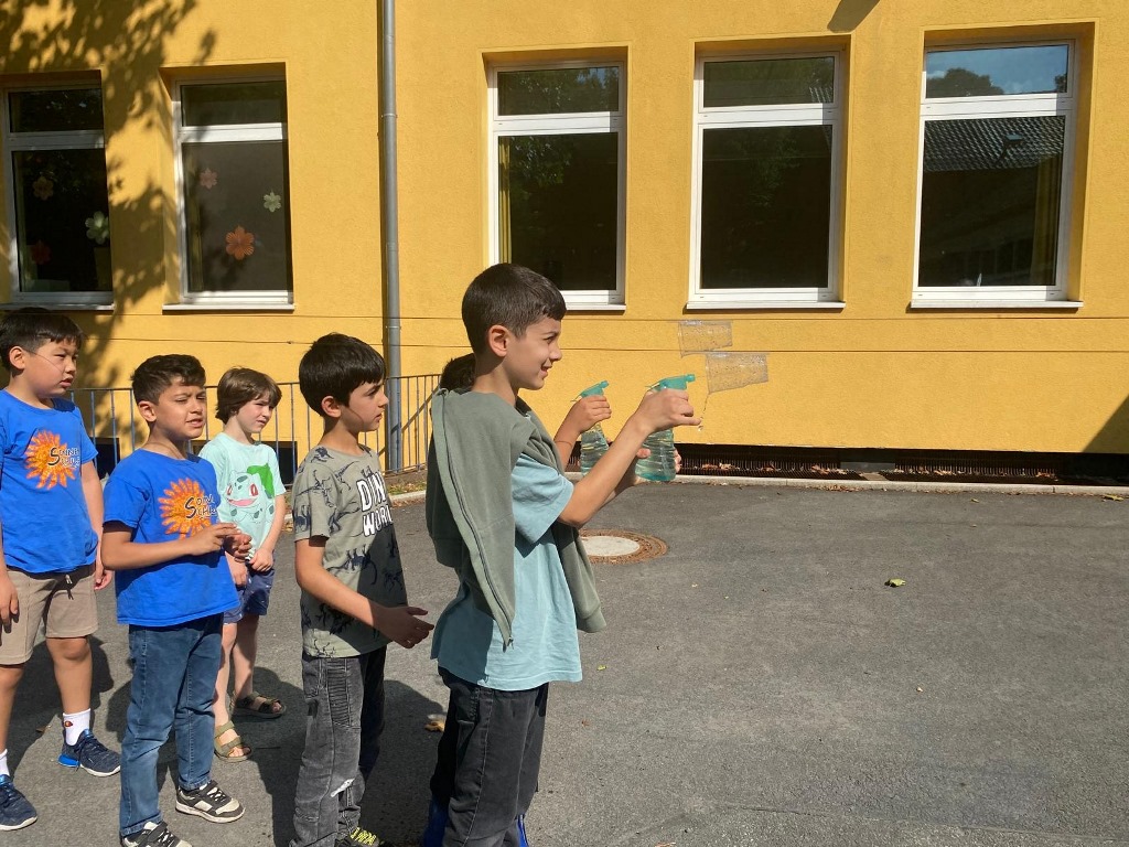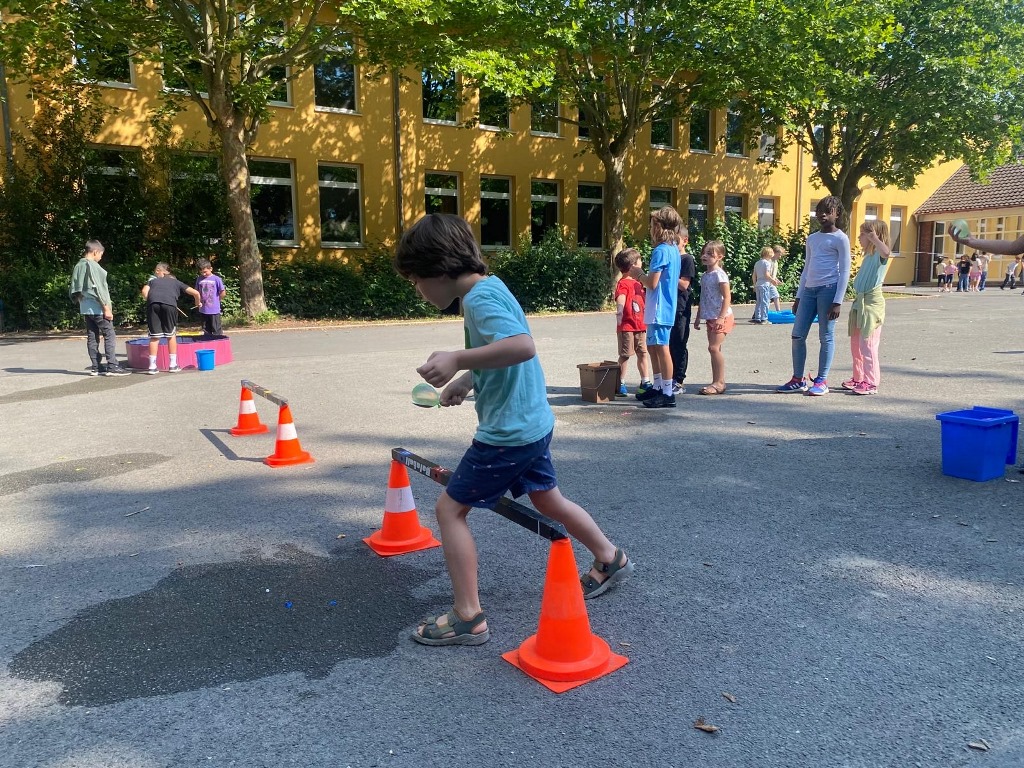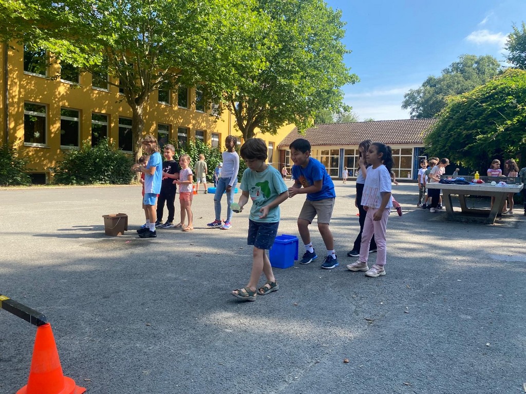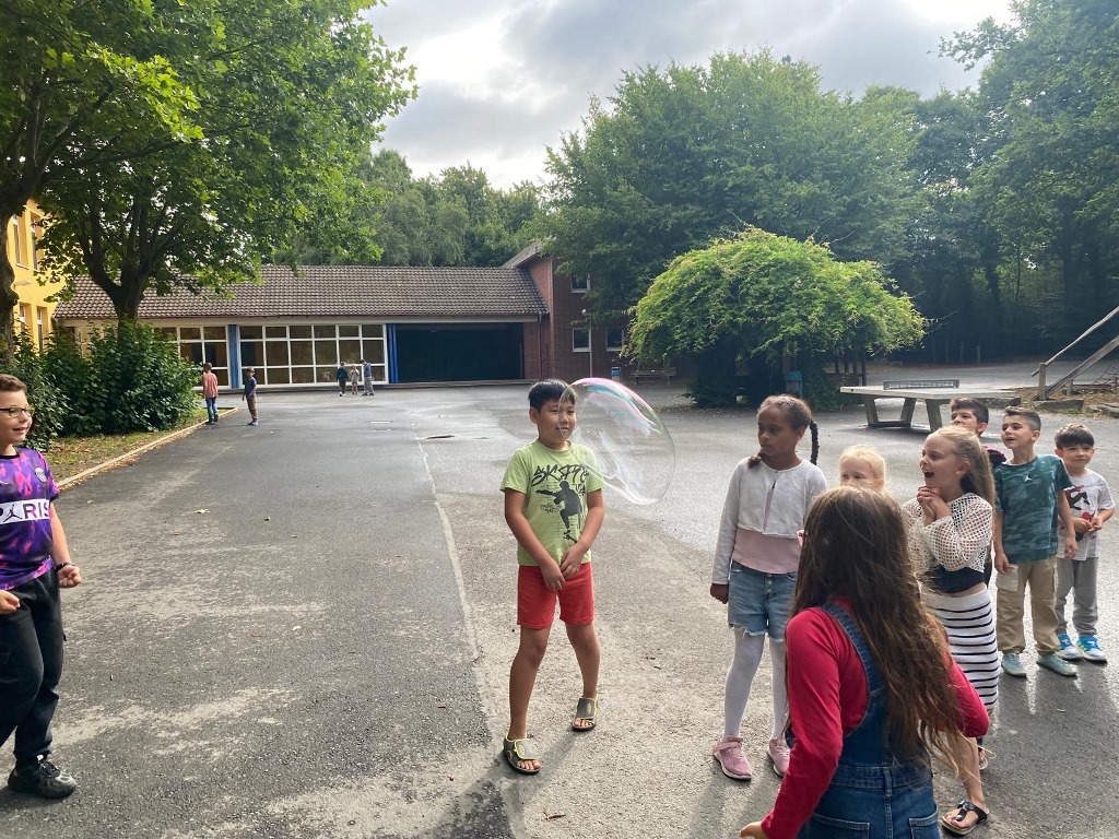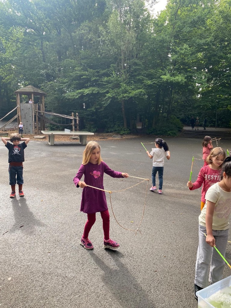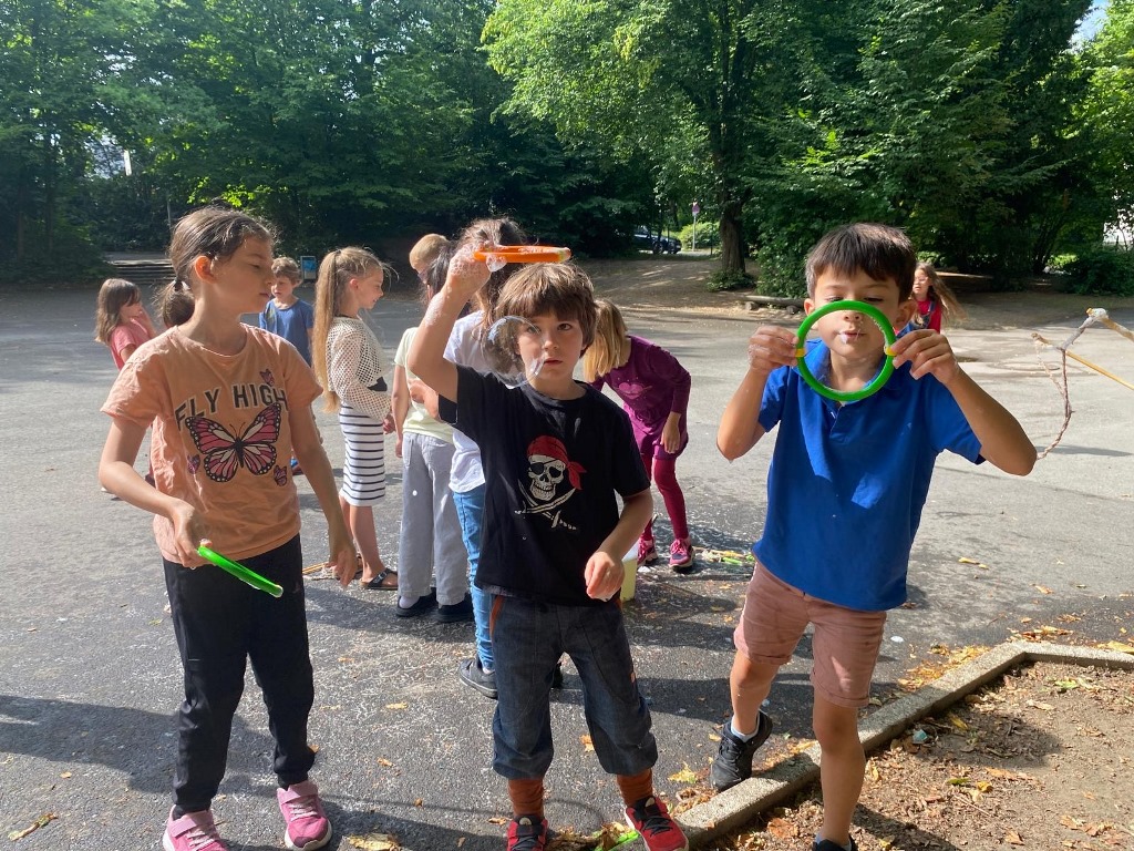 Wasserolympiade auf dem Schulhof und die selbstgemachten Riesenseifenblasen. Mit