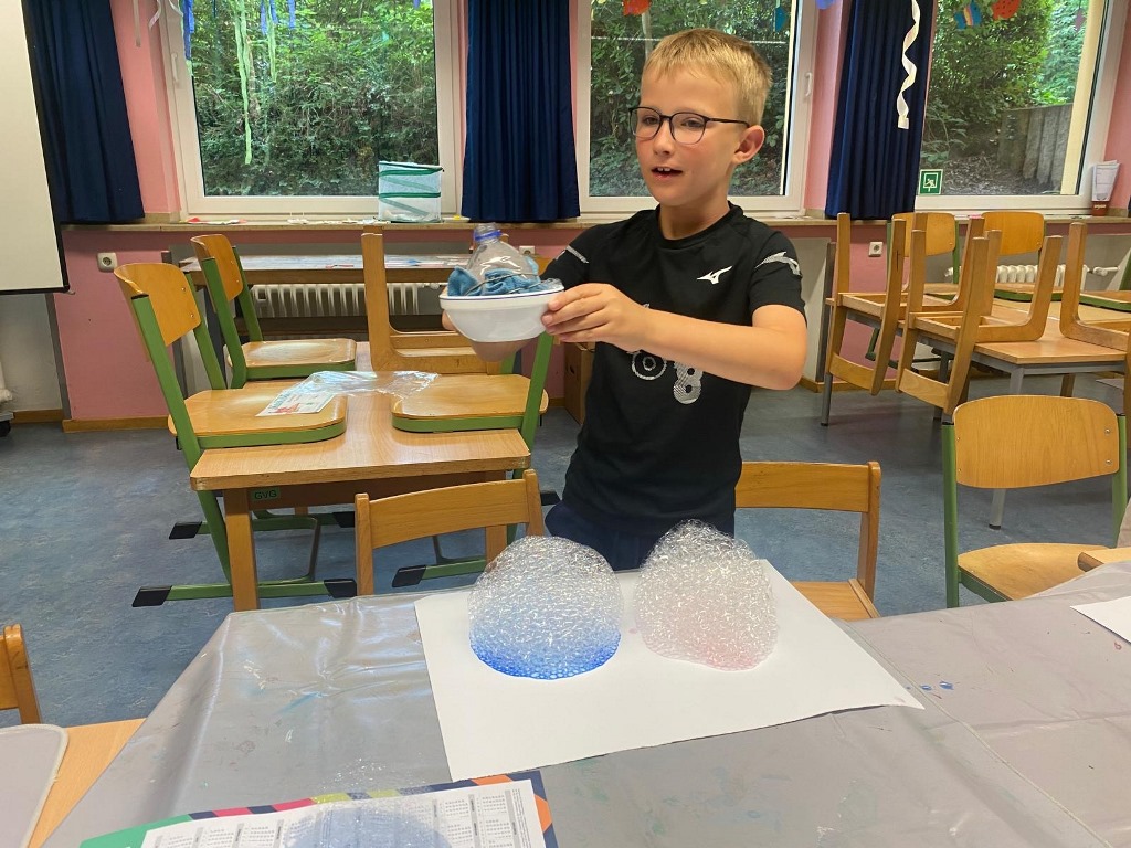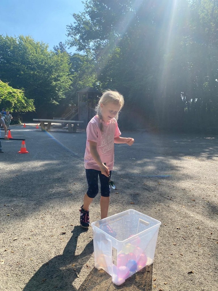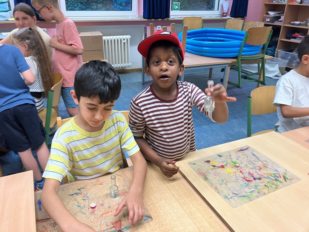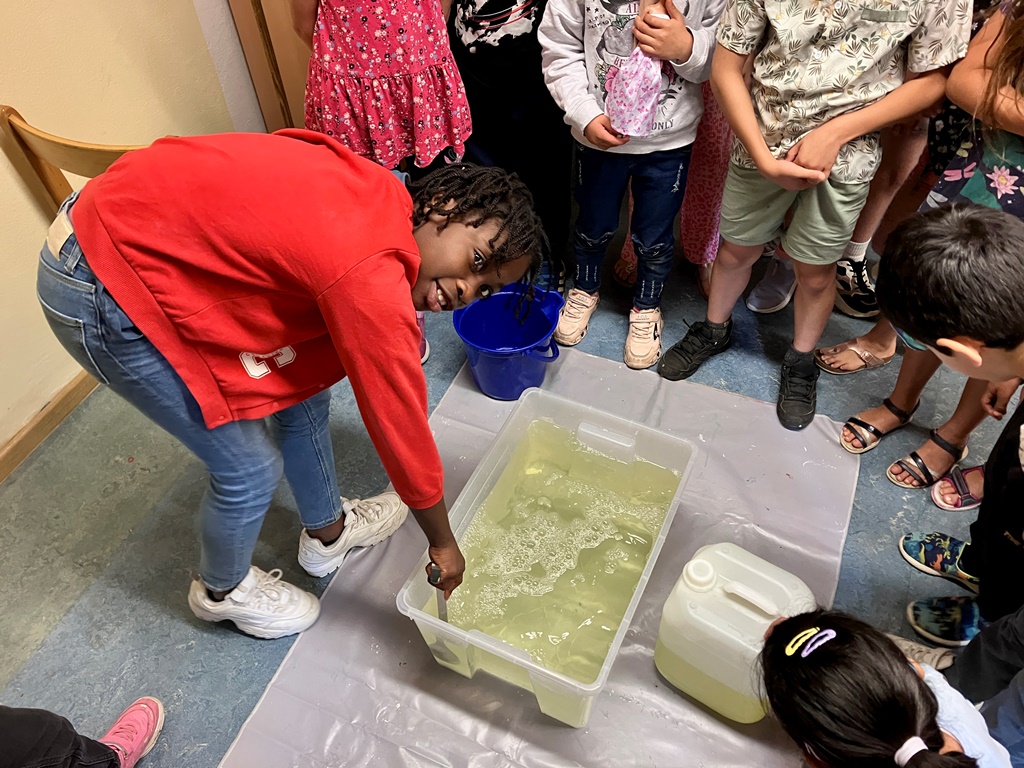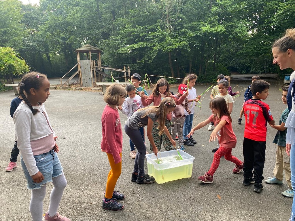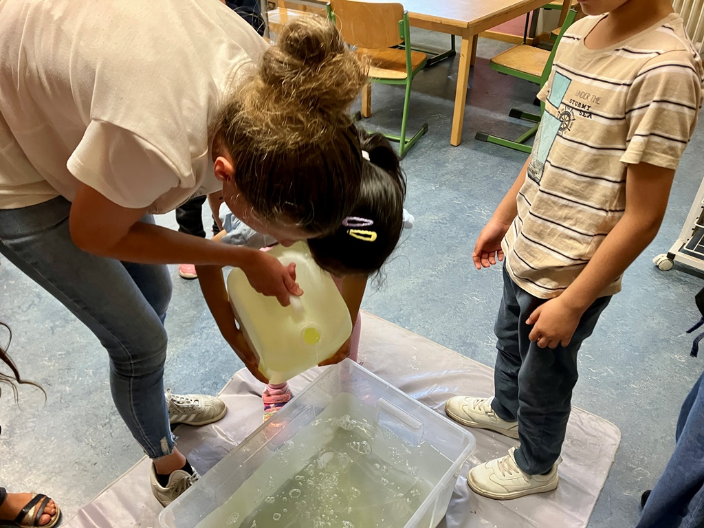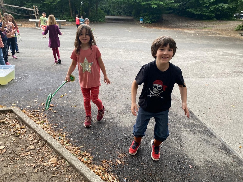 Wasserolympiade auf dem Schulhof und die selbstgemachten Riesenseifenblasen. Mit