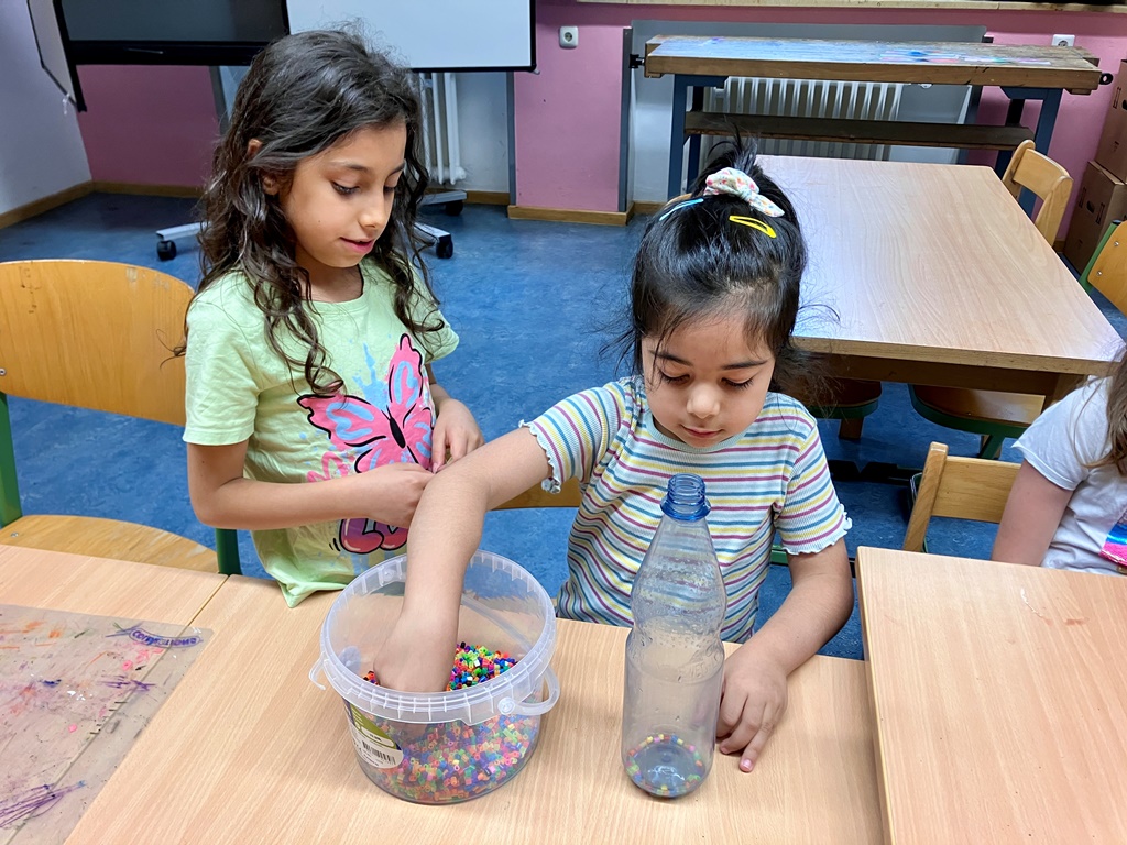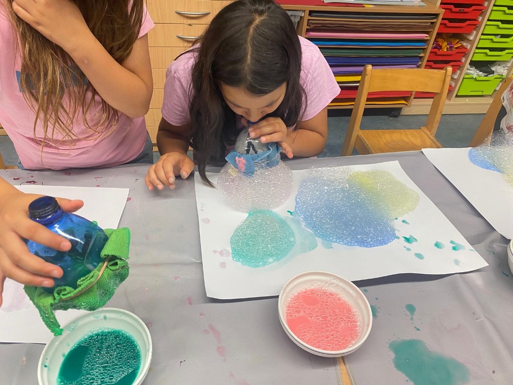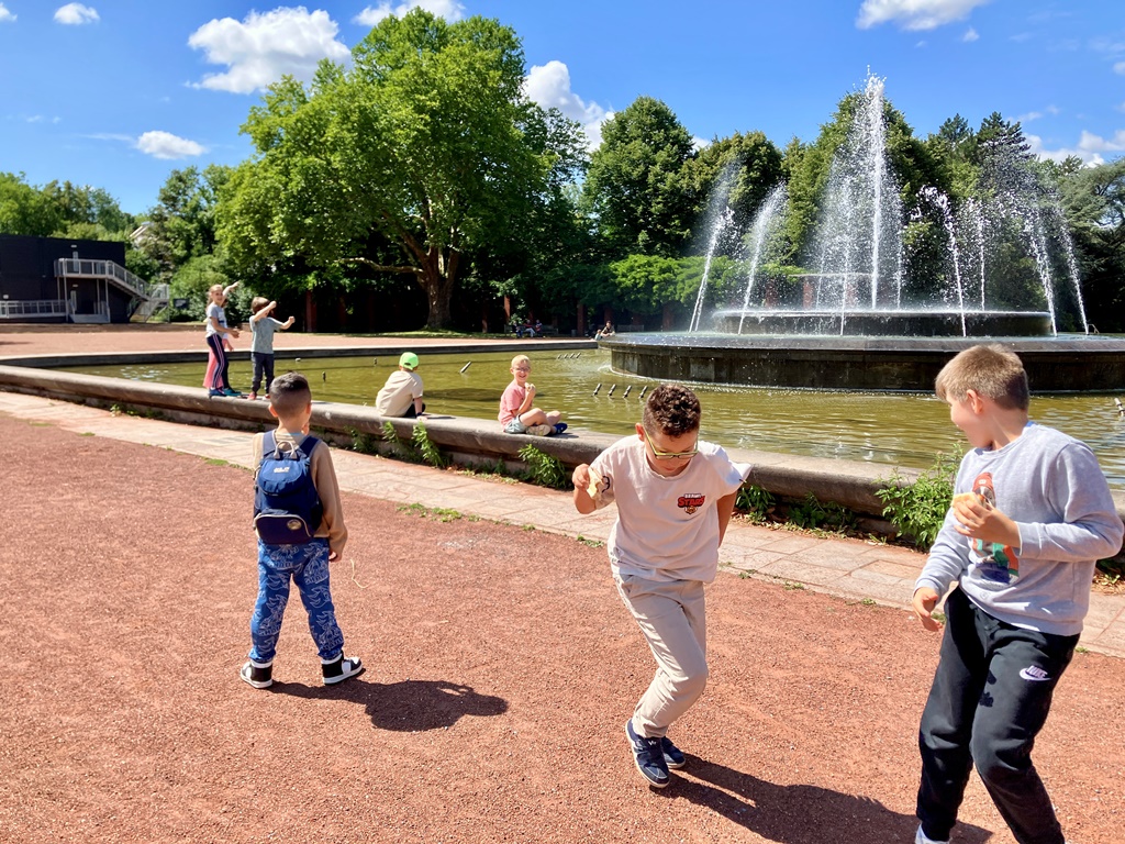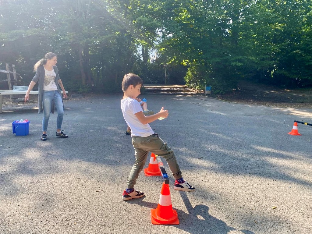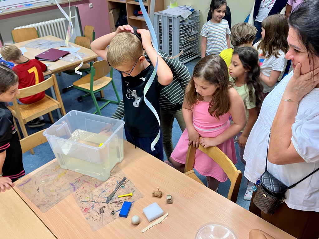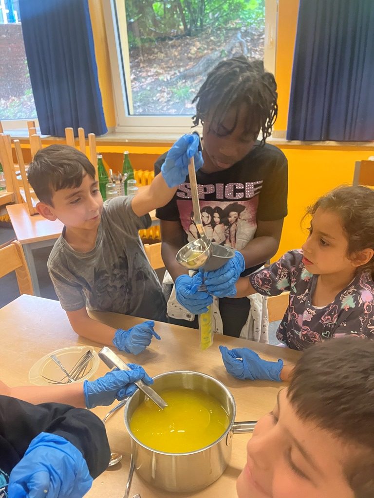 Wasserolympiade auf dem Schulhof und die selbstgemachten Riesenseifenblasen. Mit