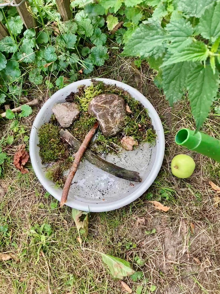 eine Vogel- und Insektentränke sowie eine biologische Mini-Wasser-Kläranlage gebaut