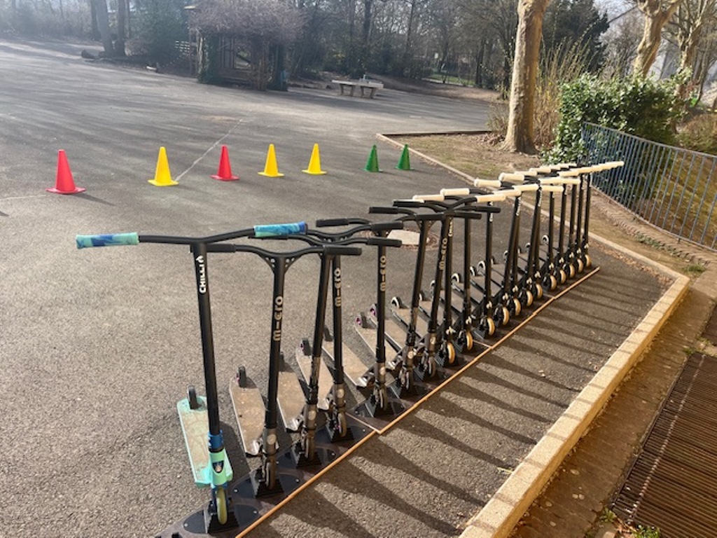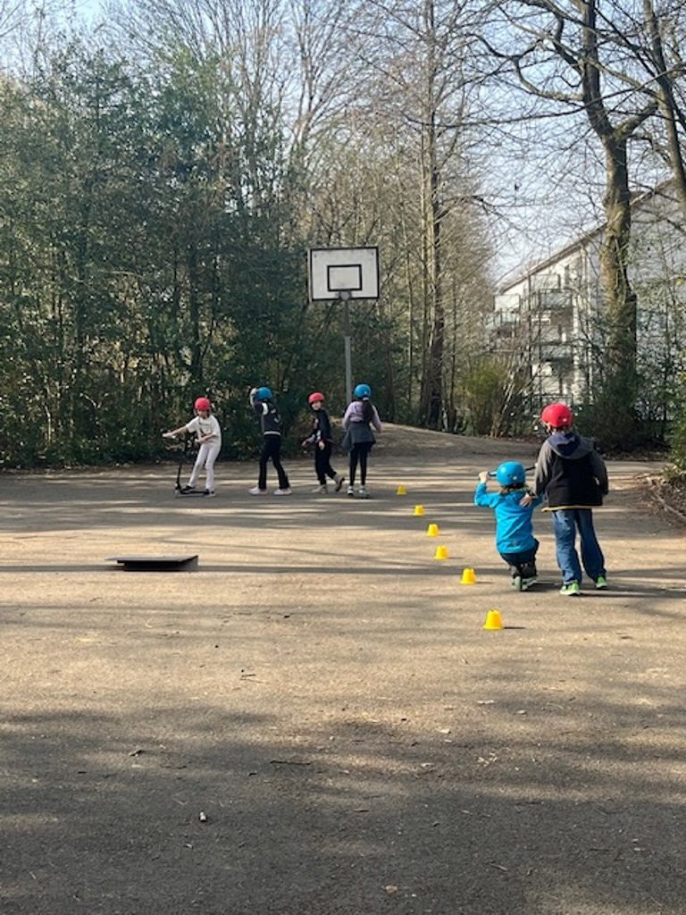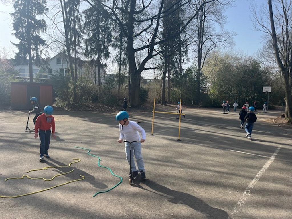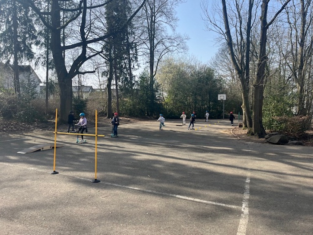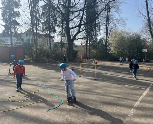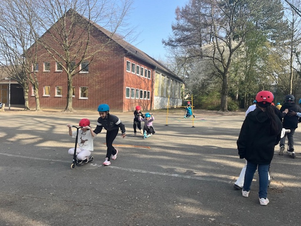 Das Roller Fit Mobil der ADAC-Stiftung macht für die nächsten zwei Wochen Halt bei uns an der Sonnenschule.
