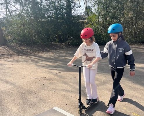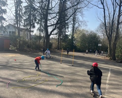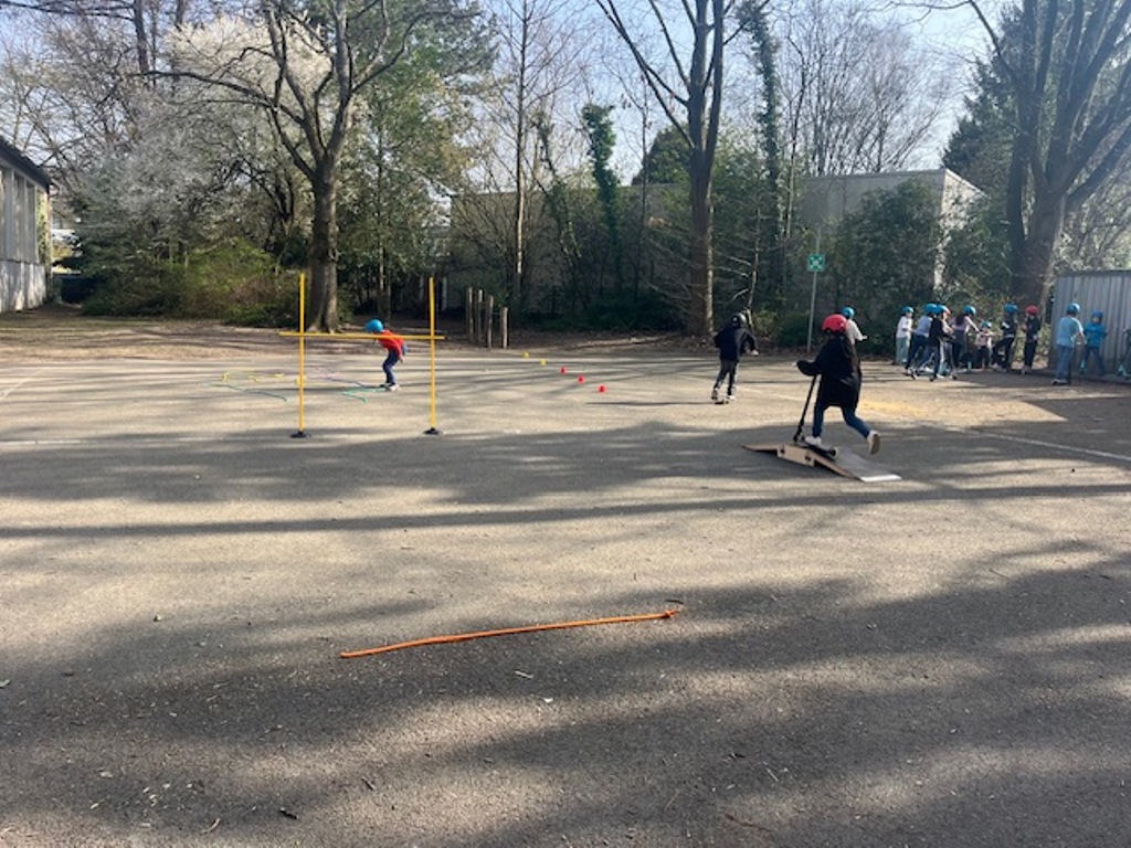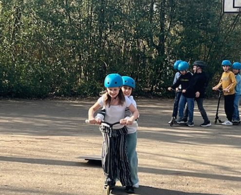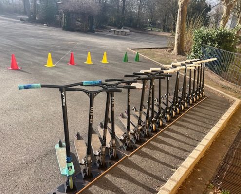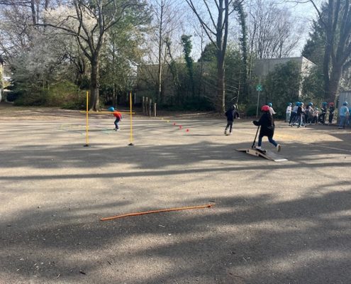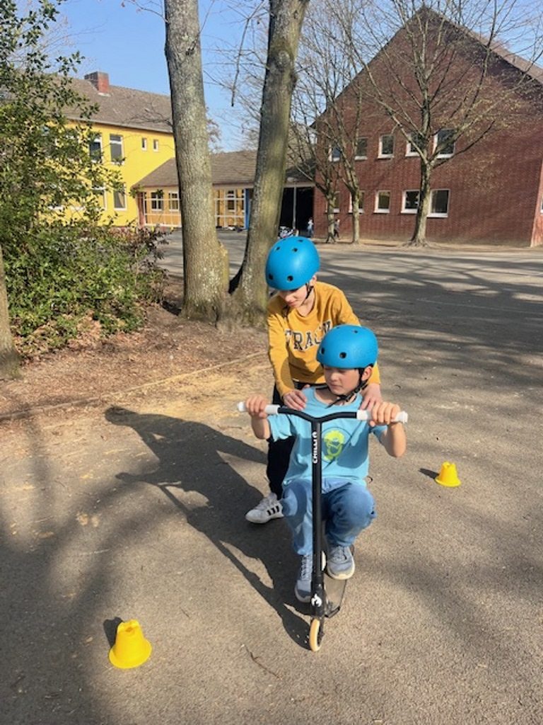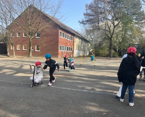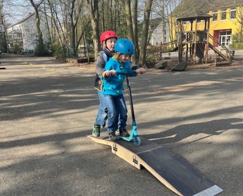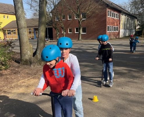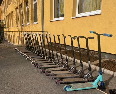 Das Roller Fit Mobil der ADAC-Stiftung macht für die nächsten zwei Wochen Halt bei uns an der Sonnenschule.