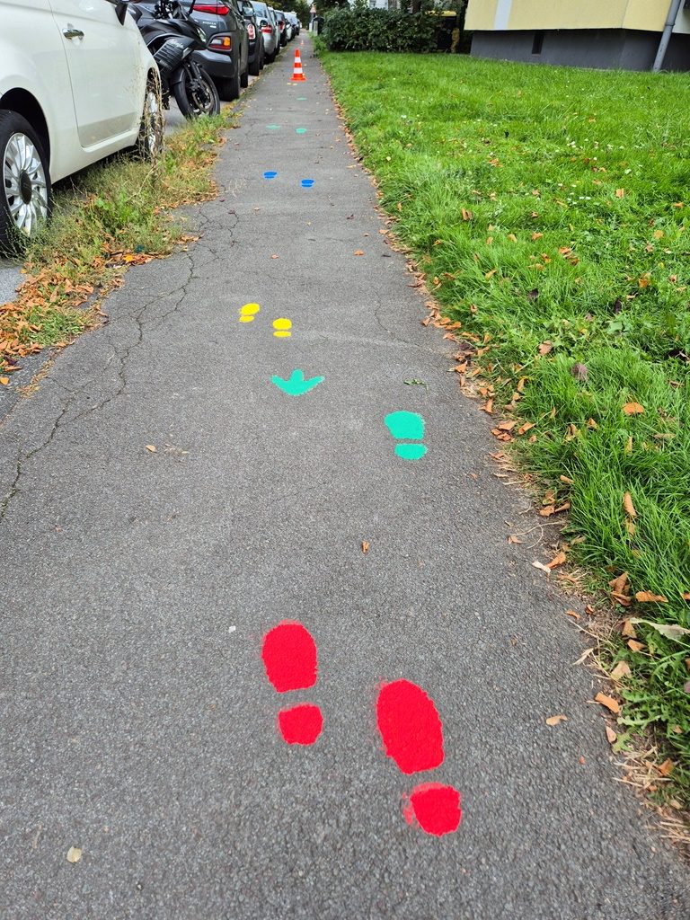 Am letzten Wochenende haben engagierte Eltern unserer Schule die Fußspuren auf den Gehwegen vor der Schule